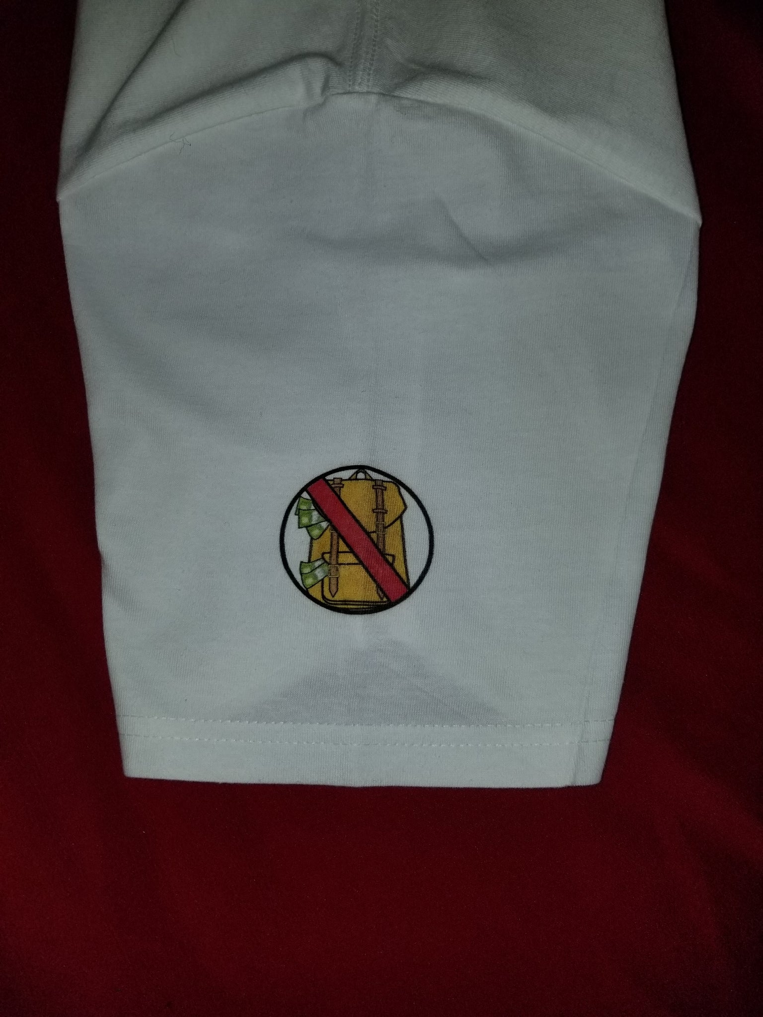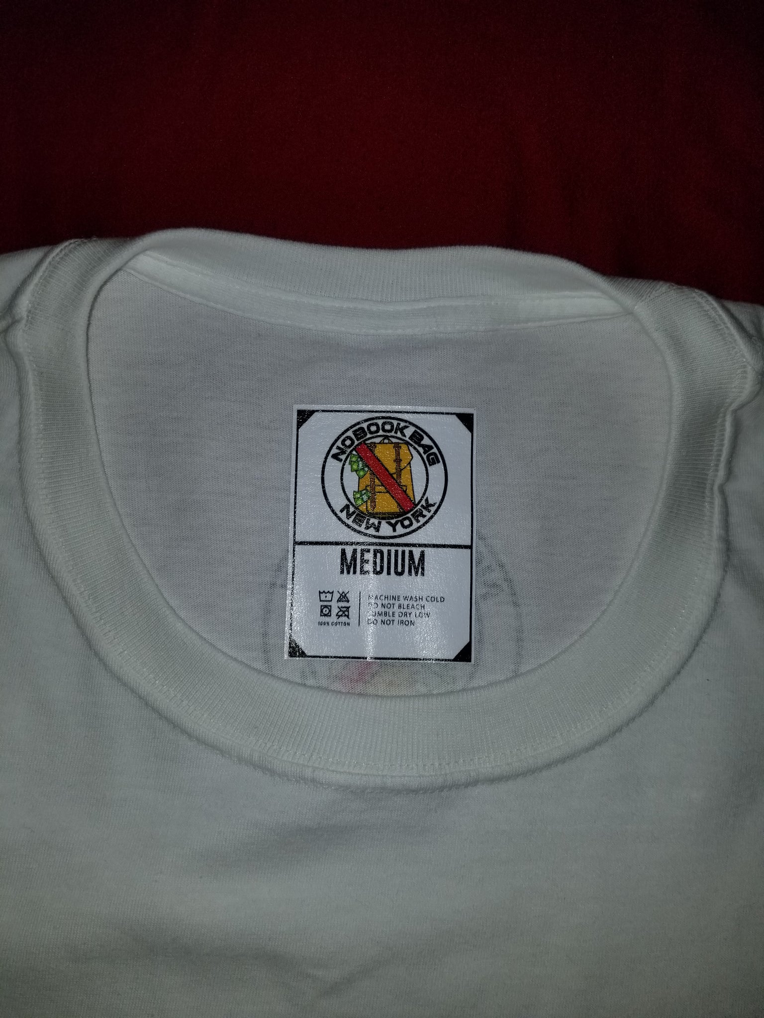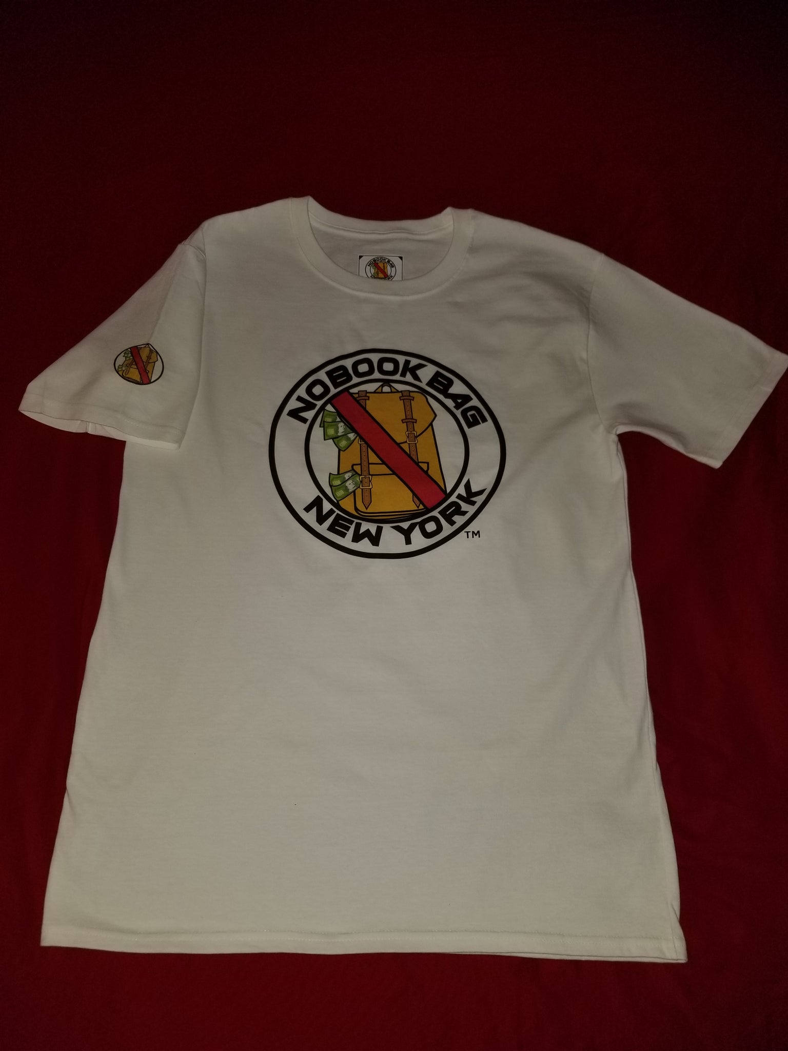 NOBOOKBAG TM 100% Cotton short sleeve white T-shirt Limited edition very constrouble and soft material, Excellent quality, wash with cold water , dont wash with bleach . NOBOOKBAG TM concept =never in the back broke always in the front making money #nobookbag